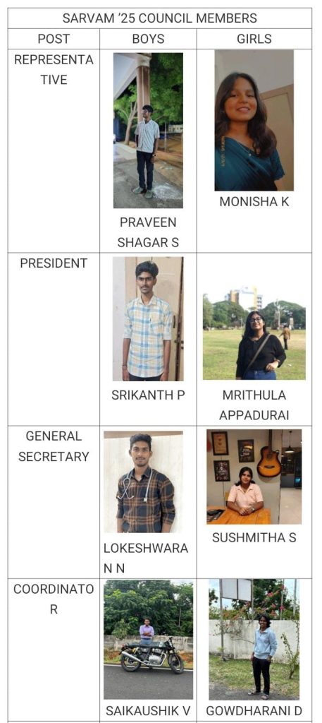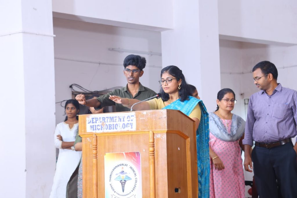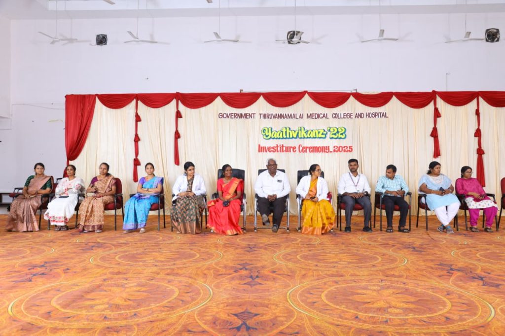 Sarvam ’25 is the student body council of Government Thiruvannamalai Medical College formed by the batch of Yaathvikanz ’22. The Investiture Ceremony of Sarvam ’25 took place on 01.08.2025 where students ceremoniously took up their posts and vowed to work hard for the betterment of both the college and the hospital. The event was presided by the Dean Dr. G. Hariharan, the Medical Superintendent Dr. D. Malathy and the Vice Principal Dr. P. Sangeetha. Our beloved faculty from other departments also made the program memorable. It marks the beginning of a new era where the students agreed to glide through difficulties to the stars.